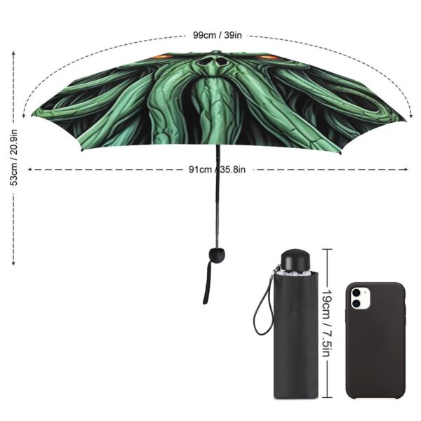 Designed for those who venture bravely in all weathers, the Cthulu 5-Fold Umbrella boasts waterproof capabilities and a swift-drying fabric, ensuring no gloomy day gets in your way.