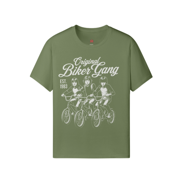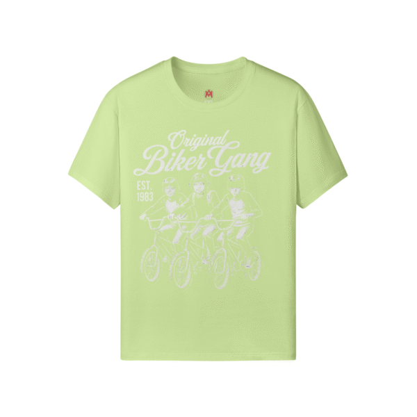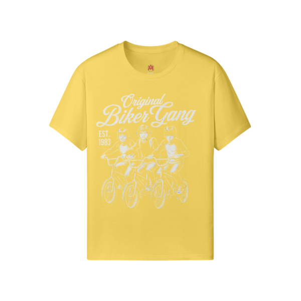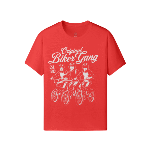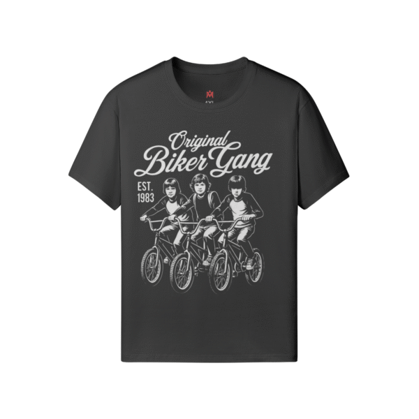 Relive the golden days of scraped knees, neon sunsets, and fearless bike rides with The Original Biker Gang Tee. Featuring a nostalgic graphic of kids on bikes straight out of an ‘80s summer, this shirt is for anyone who remembers when the streets were your playground and your crew rolled deep till the streetlights came on.