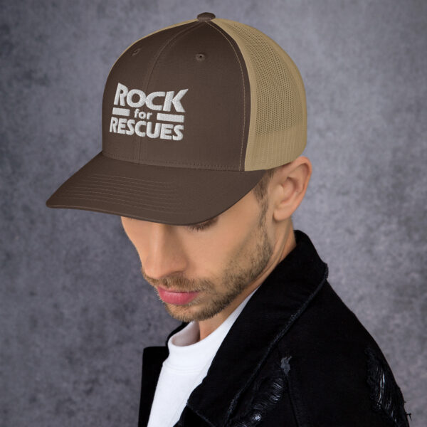 Show your love for music and rescue animals with the Rock for Rescues Embroidered Trucker Cap! Designed for both style and comfort, this classic six-panel trucker cap features a structured front, breathable mesh back, and a perfectly curved brim for a timeless look. Whether you’re rocking out at a festival, exploring the great outdoors, or just keeping the sun at bay, this cap is your go-to accessory.
