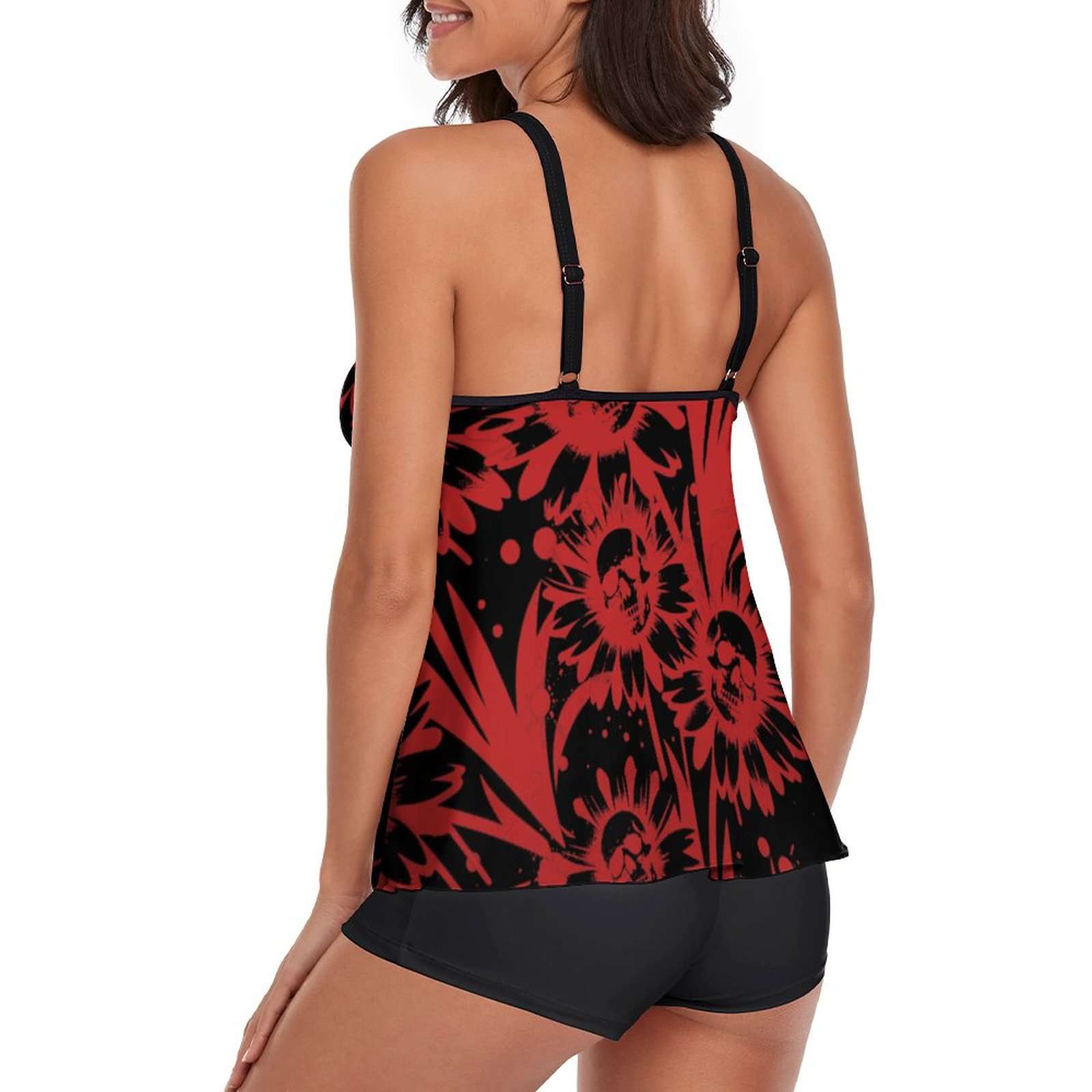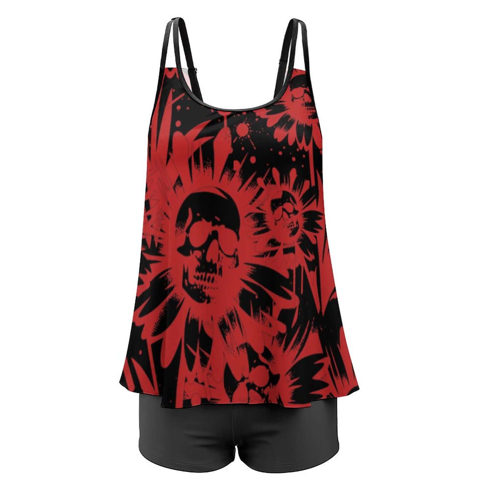 Custom Exclusive Skull & Flowers Tankini – Two-Piece Swimsuit